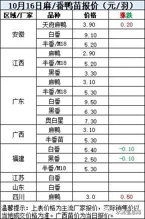 二、2022年10月16日麻鸭苗、半番鸭苗报价;
