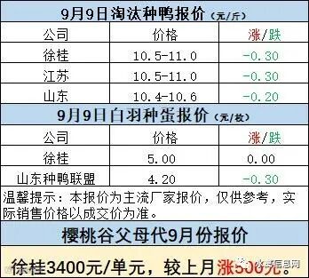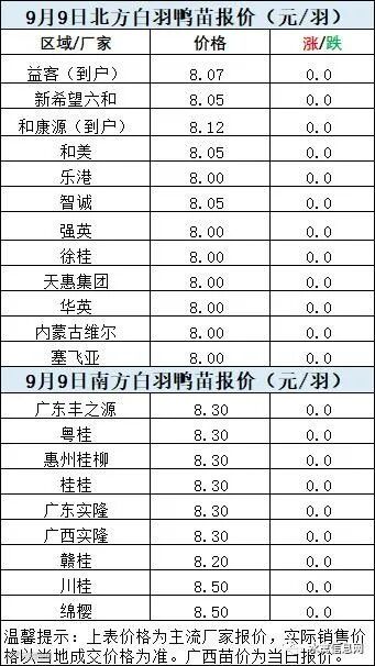 一、9月8日晚至9月9日 白羽肉鸭报价;