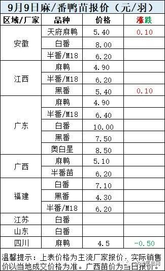 二、2022年9月9日麻鸭苗、半番鸭苗报价;
