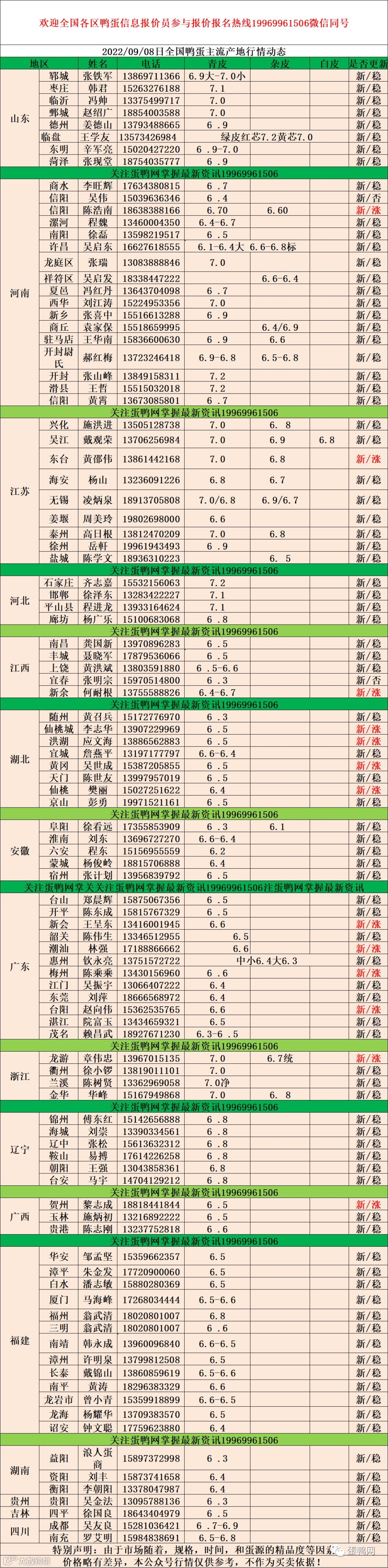 2022年9月8号鸭蛋报价