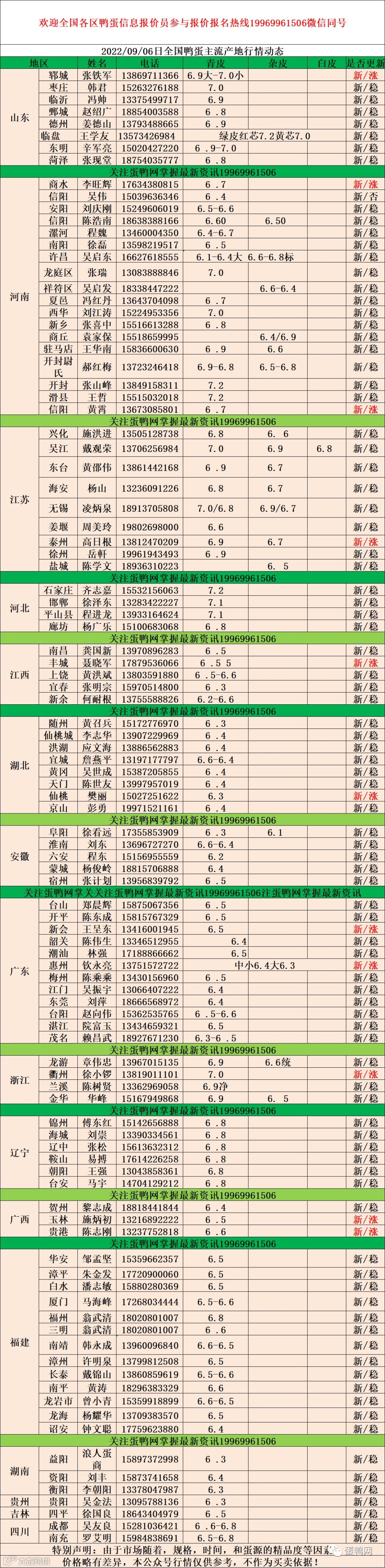 2022年9月6号鸭蛋报价