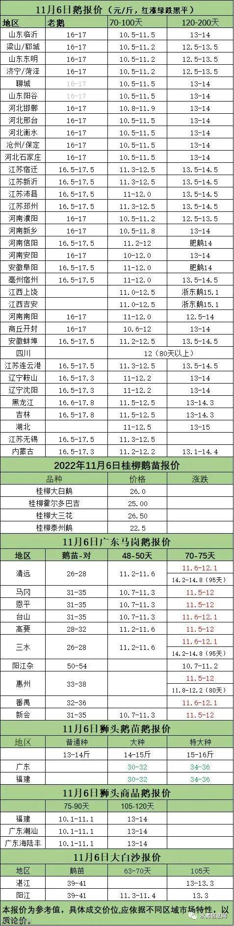 2022年11月06日鹅种蛋价格(元/枚)部分停报