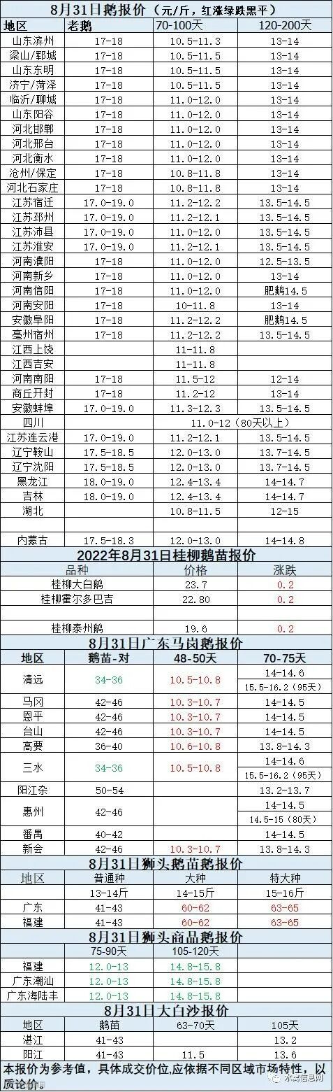 2022年8月31日各品种鹅苗价格