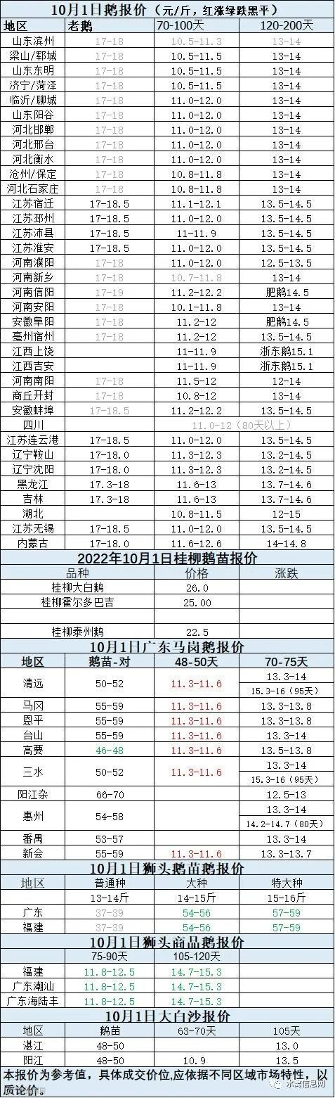 2022年10月1日鹅价快报 益牧堂水禽信息