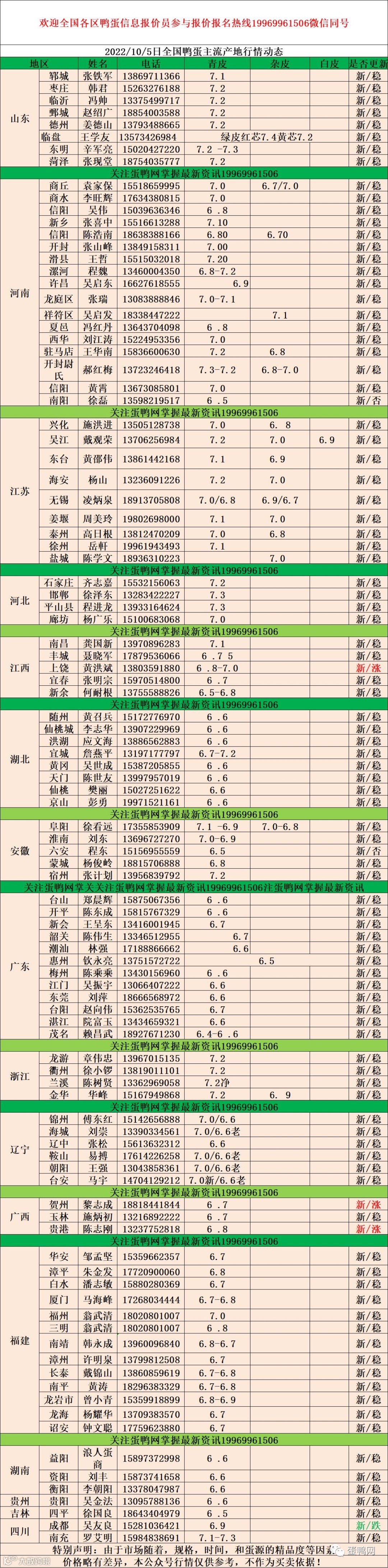 2022年10月5日鸭蛋报价