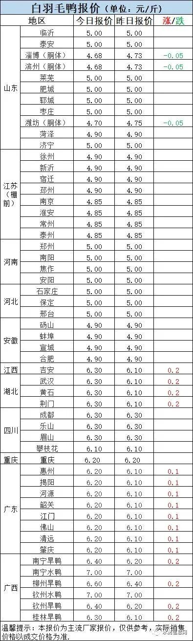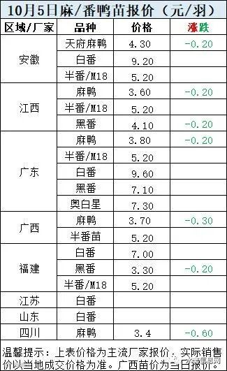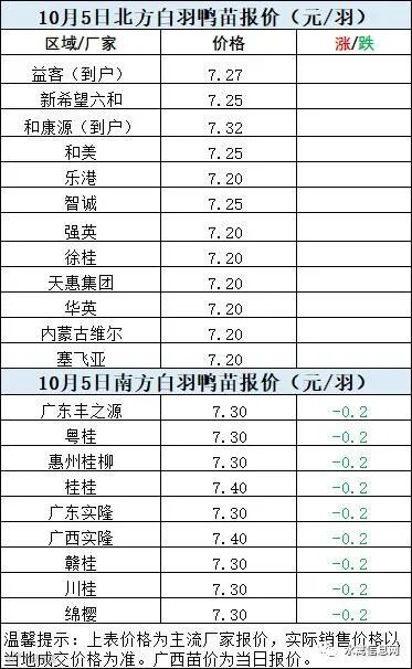一、10月4日晚至10月5日 白羽肉鸭报价;