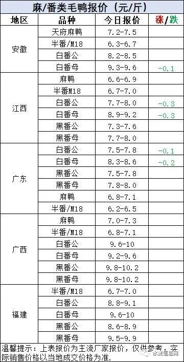 麻鸭苗报价下滑,半番鸭苗报价稳定。