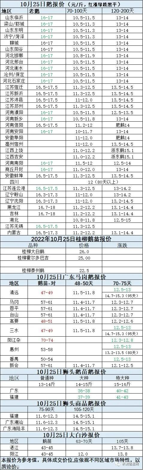 2022年10月25日鹅种蛋价格(元/枚)部分停报