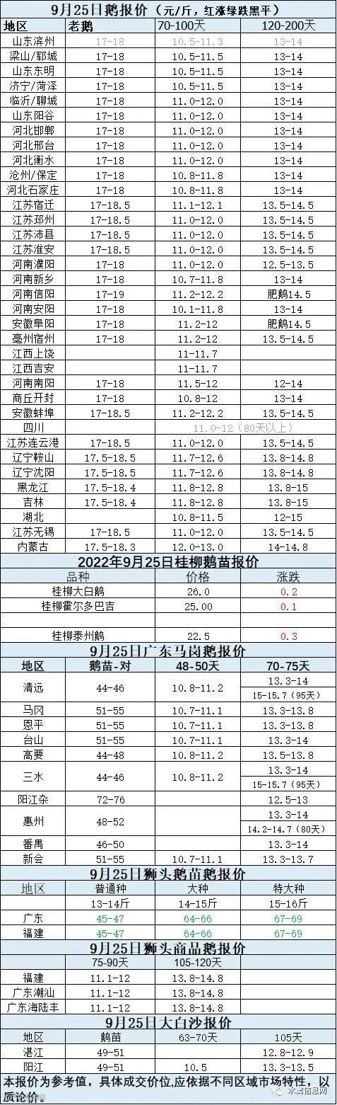 2022年9月25日鹅种蛋价格(元/枚)部分停报