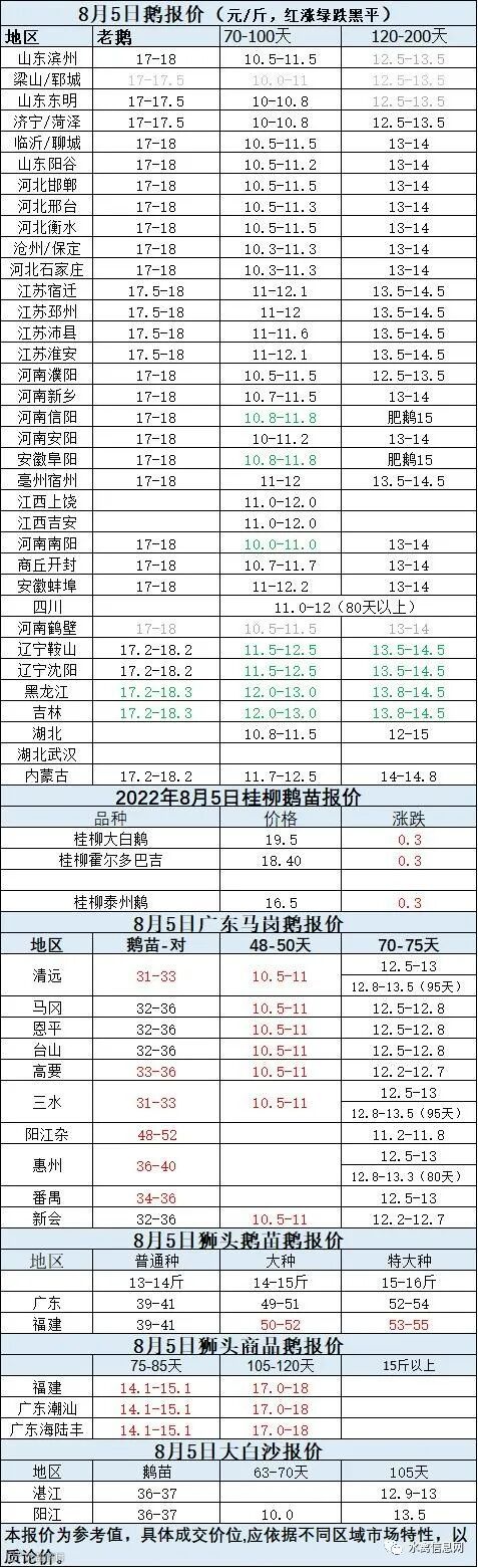 2022年8月05日各品种鹅苗价格