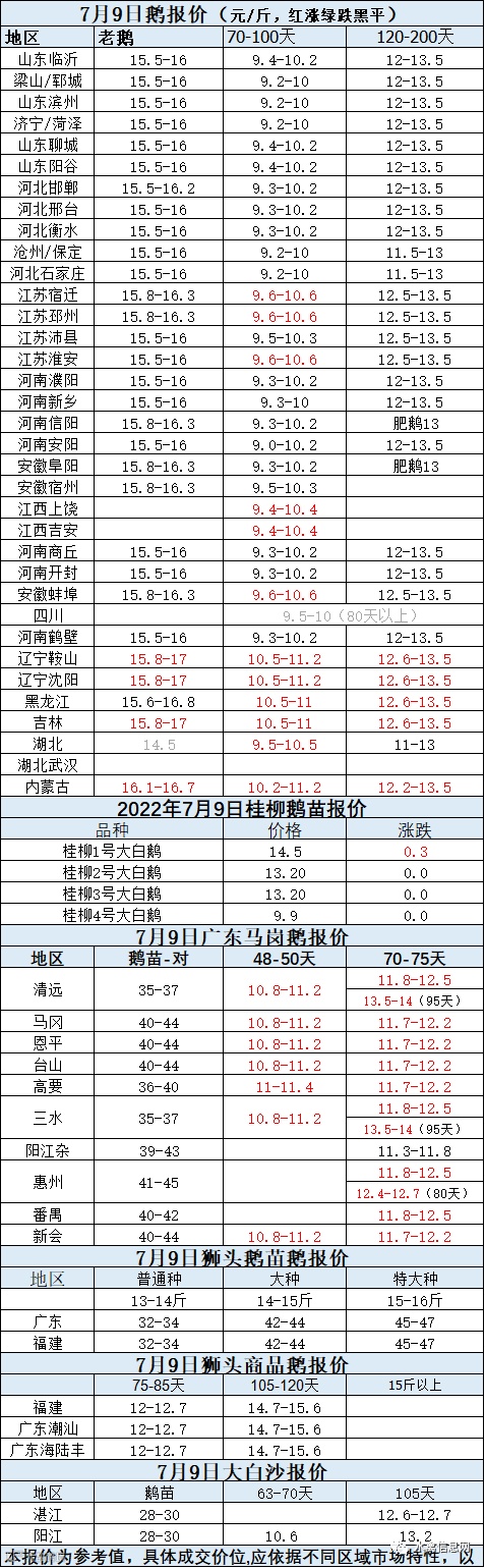 2022年7月09日各品种鹅苗价格