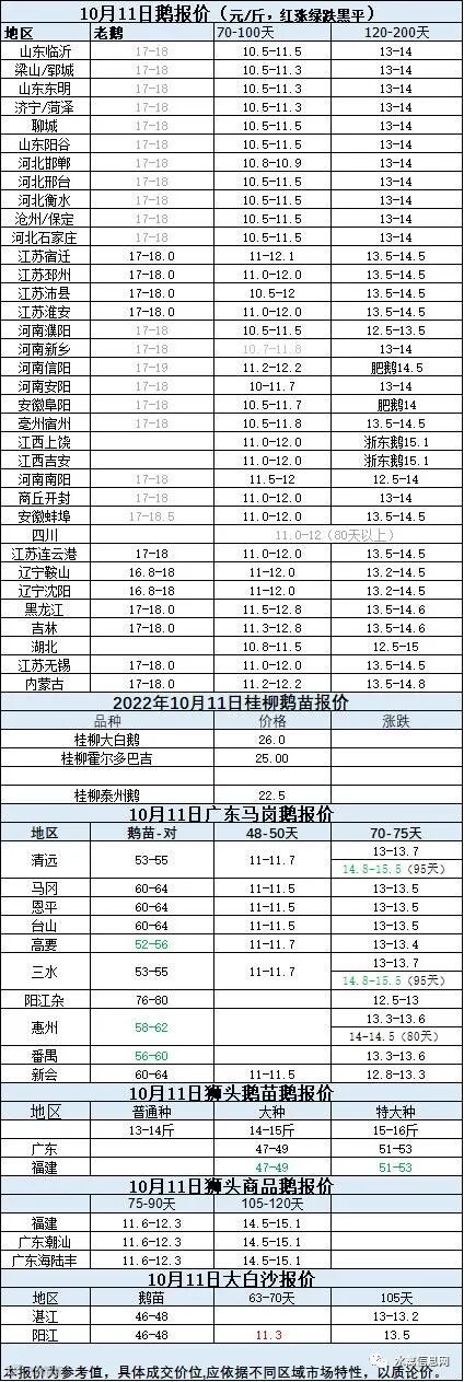 2022年10月11日鹅种蛋价格(元/枚)部分停报