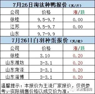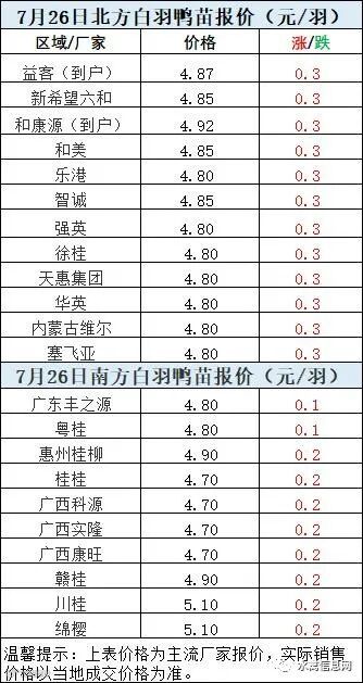 一、7月25日晚至7月26日 白羽肉鸭报价