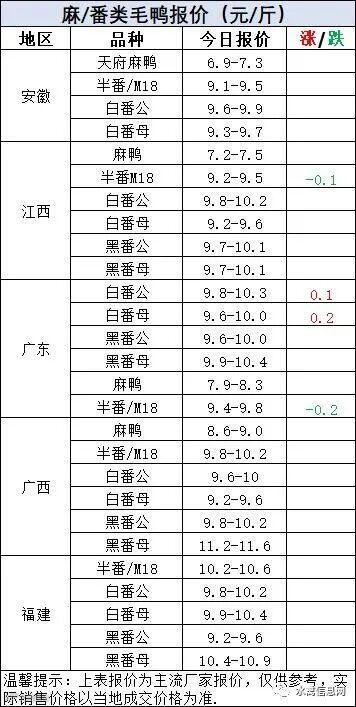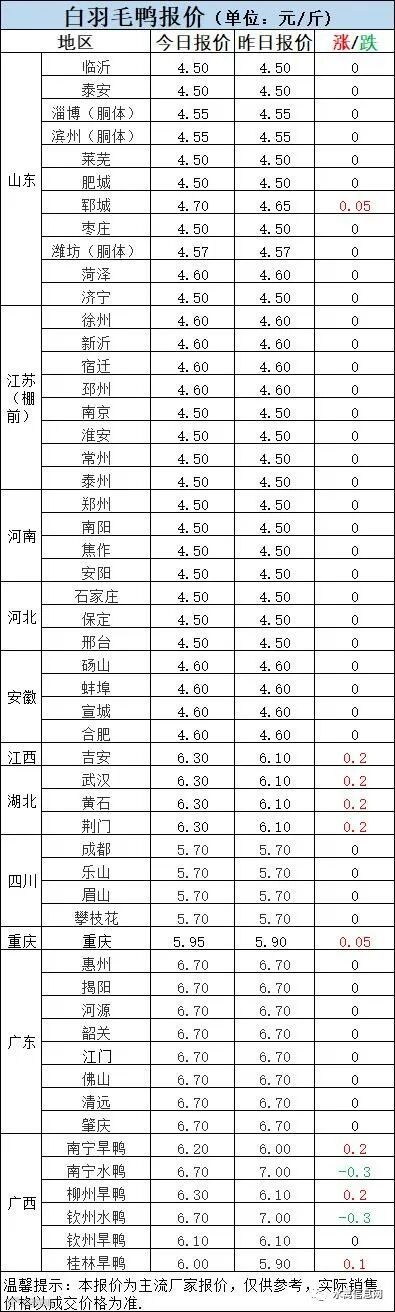 近期鸭苗价格波动较大,产品经销商观望态度浓厚,走货较弱,前两日产品有所下滑;近期苗价快速上涨,成本迅速拉升,厂家议价窗口收缩;今日报价稳定为主,前两日下滑品类开始回调。