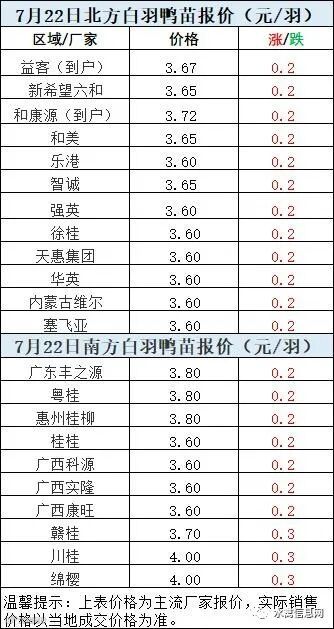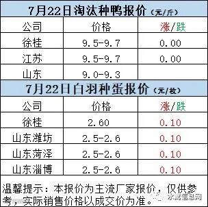 一、7月21日晚至7月22日 白羽肉鸭报价