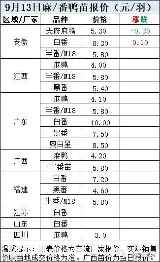 二、2022年9月13日麻鸭苗、半番鸭苗报价;