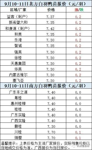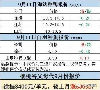 一、9月10日晚至9月11日 白羽肉鸭报价;