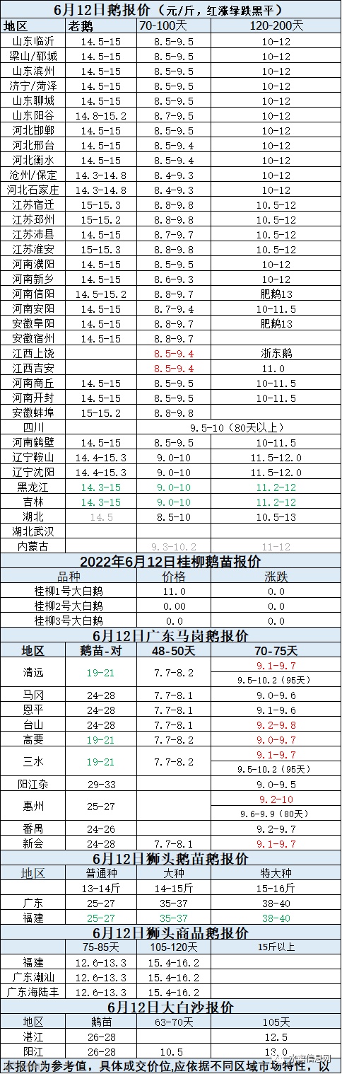 2022年6月12日鹅种蛋价格(元/枚)部分停报