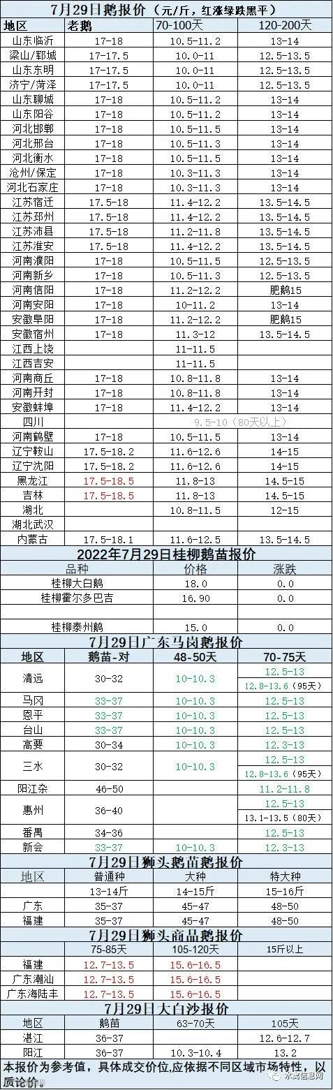 2022年7月29日各品种鹅苗价格