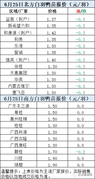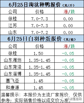 一、6月24日晚至6月25日 白羽肉鸭报价