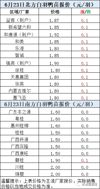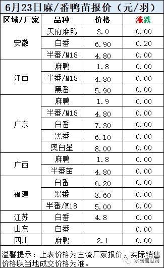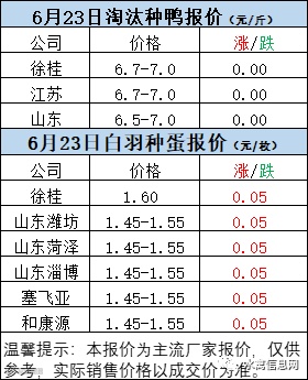 一、6月22日晚至6月23日 白羽肉鸭报价
