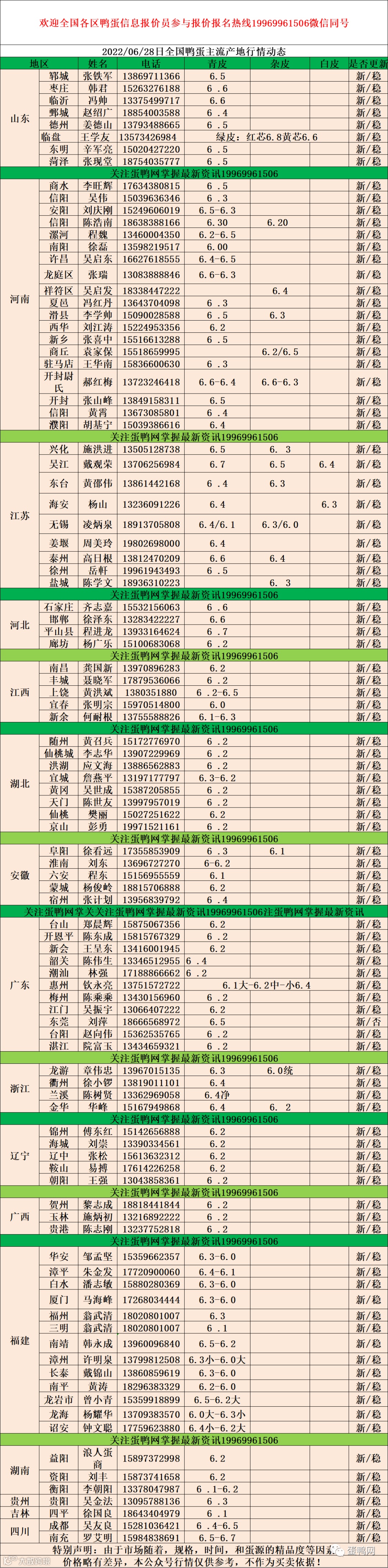 2022年6月28号鸭蛋报价 益牧堂水禽信息