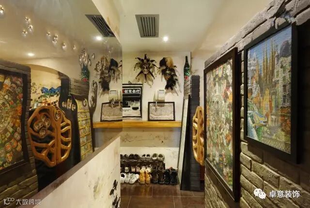 暗黄镜面、青砖墙的效果,增强了空间感