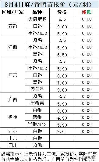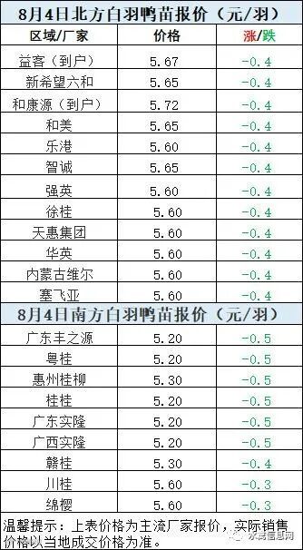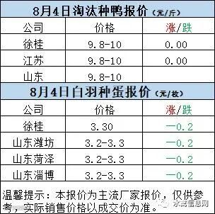 一、8月3日晚至8月4日 白羽肉鸭报价
