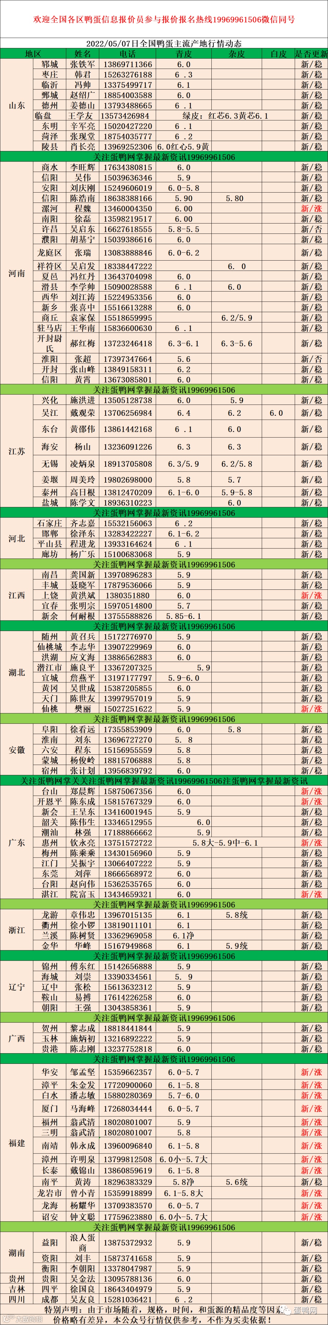 2022年5月7号鸭蛋报价