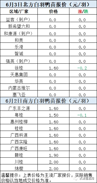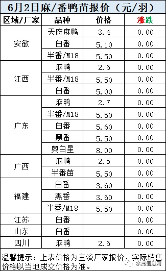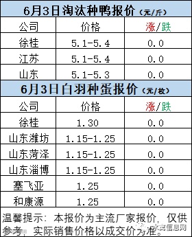 一、6月2日晚至6月3日 白羽肉鸭报价