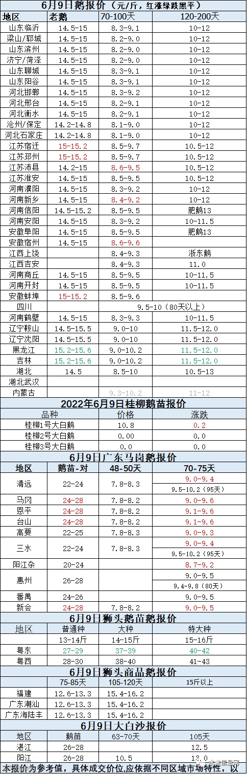 2022年6月09日各品种鹅苗价格