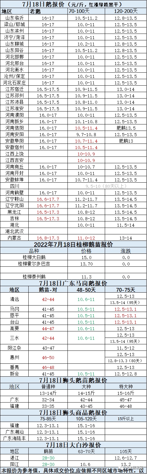 2022年7月18日鹅种蛋价格(元/枚)部分停报