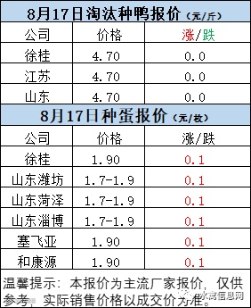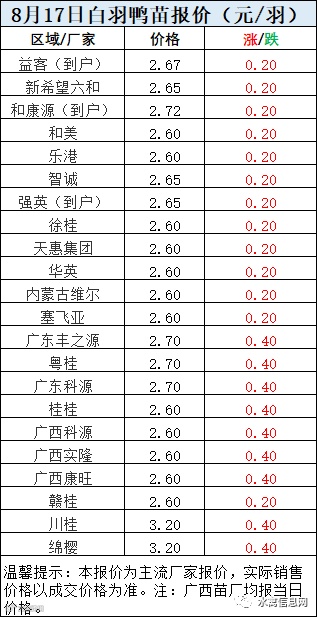 一、8月17日白羽鸭苗报价