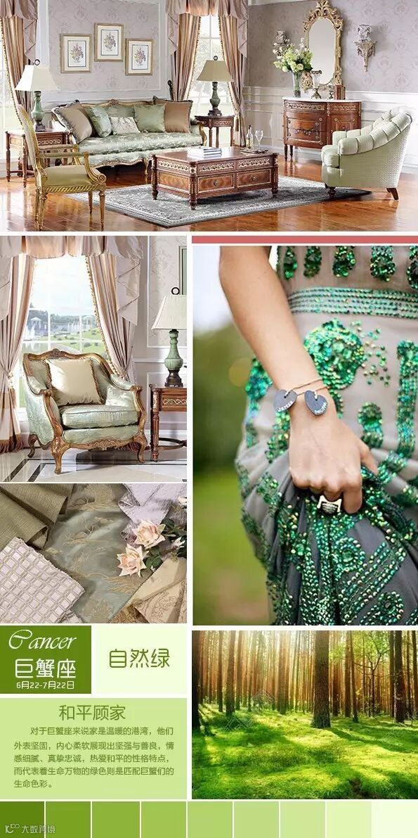 绿意盎然则是匹配巨蟹们的生命色彩。