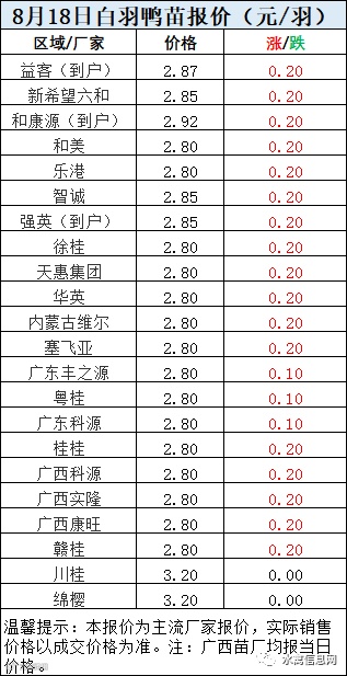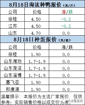 一、8月17日晚至8月18日 白羽肉鸭报价