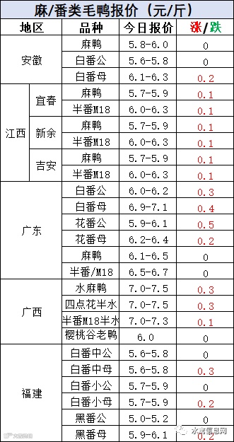 明日麻鸭苗报价上涨0.2元/羽,半番鸭苗报价上涨0.2元/羽。
