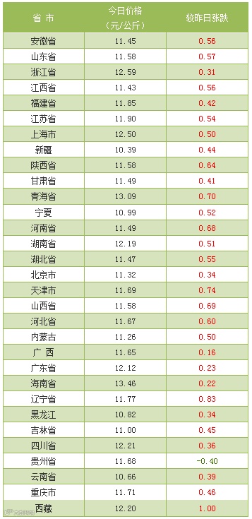 今日全国猪价集体大涨!北方屠企涨幅最为明显, 白条价一天大涨1元/公斤,部分市场存在抢货现象。