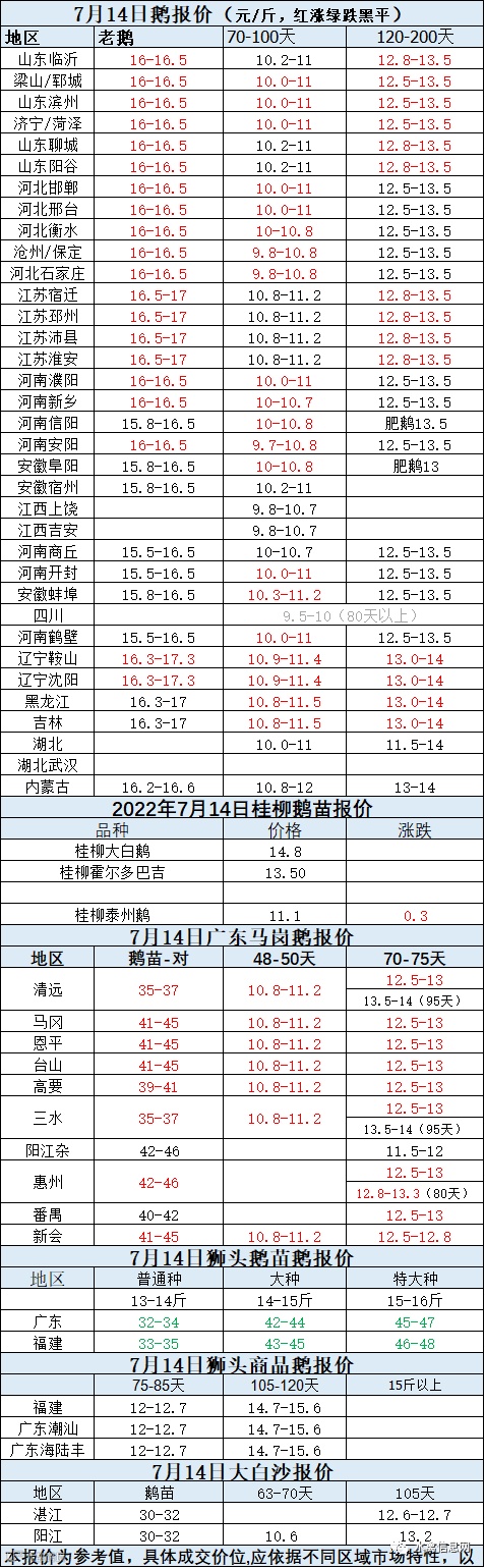 2022年7月14日鹅种蛋价格(元/枚)部分停报