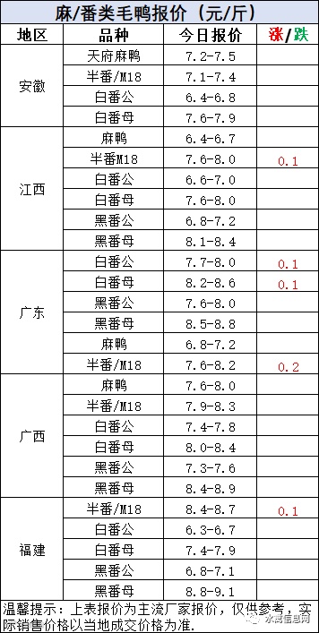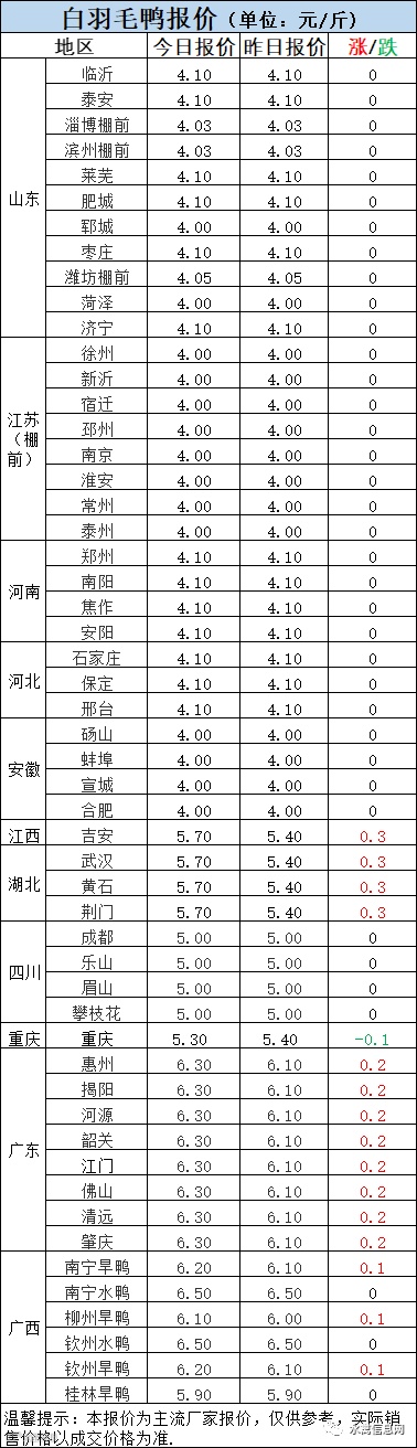 明日南方鸭苗,底部反弹,上涨0.1元/羽。