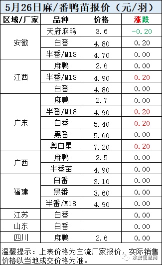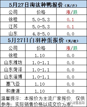 一、5月26日晚至5月27日 白羽肉鸭报价