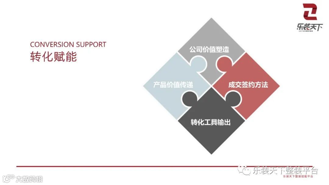 乐装天下整装商学院设置十二大板块,内容涉猎整装品牌顶层设计、整装产品研发、店面设计、供应链产品、销售管理赋能、转化赋能、设计赋能、交付赋能、运营赋能、人力资源体系设计、 财务体系指导以及商学院培训项目等,300+门课程,满足灵活组合,满足整装企业各类需求,聚焦当下整装市场所需要的关键痛点,协助学员乃至企业打造系统化、规模化、和有效学习解决方法。
