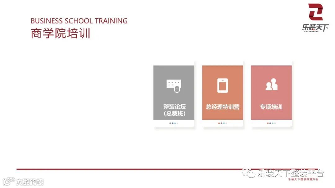 包含整装论坛(总裁班)、总经理特训营、邀请行业大咖及资深人士的讲座及培训,专项培训培养行业精英。