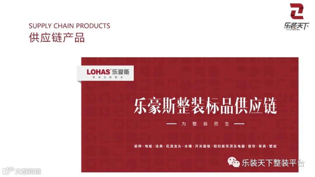 本模块涵盖乐豪斯供应链产品包含整装全品类,有家具、窗帘、灯具、壁纸、收纳品、地毯、挂画、瓷砖、地板、龙头、花洒、洁具、集成吊顶、厨卫五金等全品类主材产品以及家具、窗帘、壁纸、灯具、配饰等软装产品。全屋家庭品类。是最有整装基因的标品供应链体系。