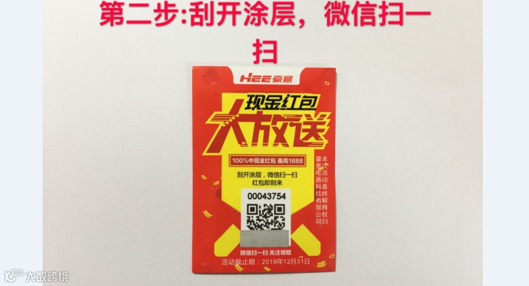 二、在小卡片上刮掉涂层,就可以扫码领红包啦。