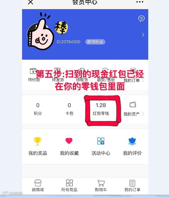 五、中奖后的红包如何领取呢?前往个人中心后,在会员中心的“红包零钱”处点击提现。(注意:每天最多提现5次;每次最多金额200元,建议客户大量购买扫码后,提前,可以进入豪意服务号,点击进入“我的红包”,——点击进入“我的零钱包”——点击进入“提现”)