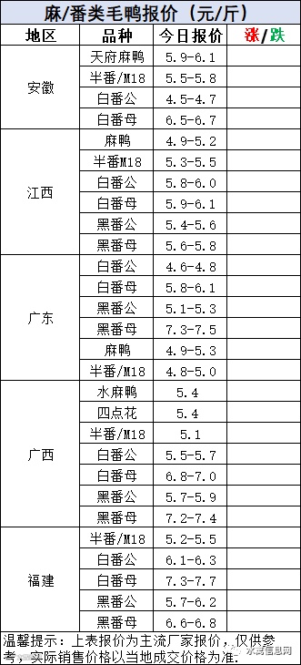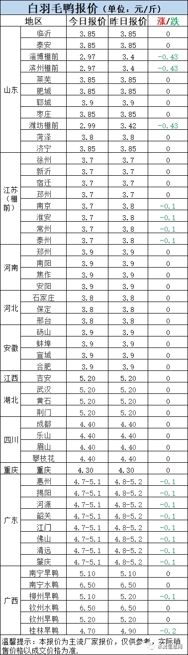 明日樱桃谷鸭苗逆势上涨0.1元/羽,连续下滑后出苗量下降,鸭苗上涨调整。