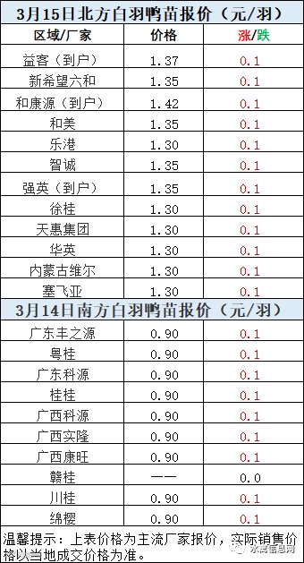一、3月14日晚至3月15日 白羽肉鸭报价