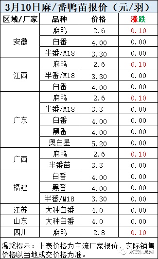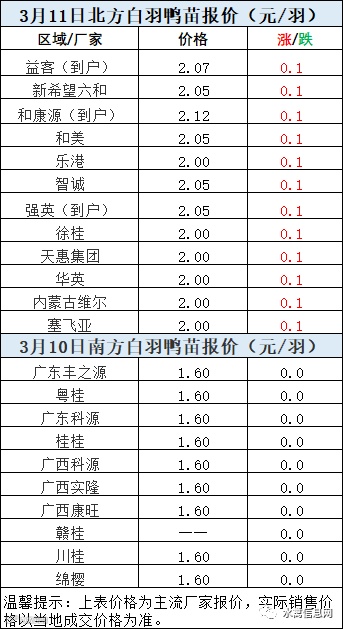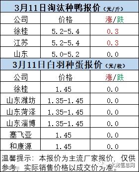 一、3月10日晚至3月11日 白羽肉鸭报价