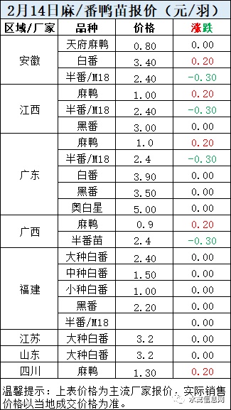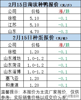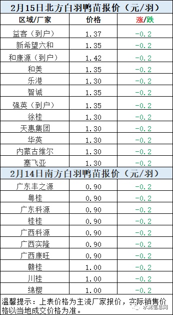 一、2月14日晚至2月15日 白羽肉鸭报价