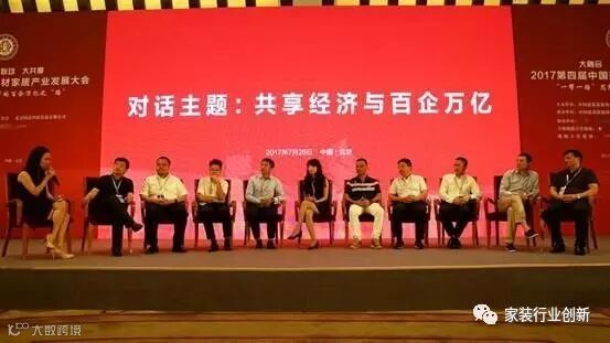 大会以“大融合、大联动、大共享”为话题展开行业大讨论,分享嘉宾围绕一带一路、特色小镇、大数据、品牌建设、数字精装、共享经济等关键词进行分享与交流。对话环节一从共享经济与百企万亿主题出发,与来自材料企业、互联网家装企业、公装企业的嘉宾探讨共享模式在家居领域的应用,以及如何通过共享平台协同作战,共同实现万亿产值目标。对话环节二从绿色家居与企业使命的话题探讨建材家居的绿色革命,价值重塑和价值提升。
